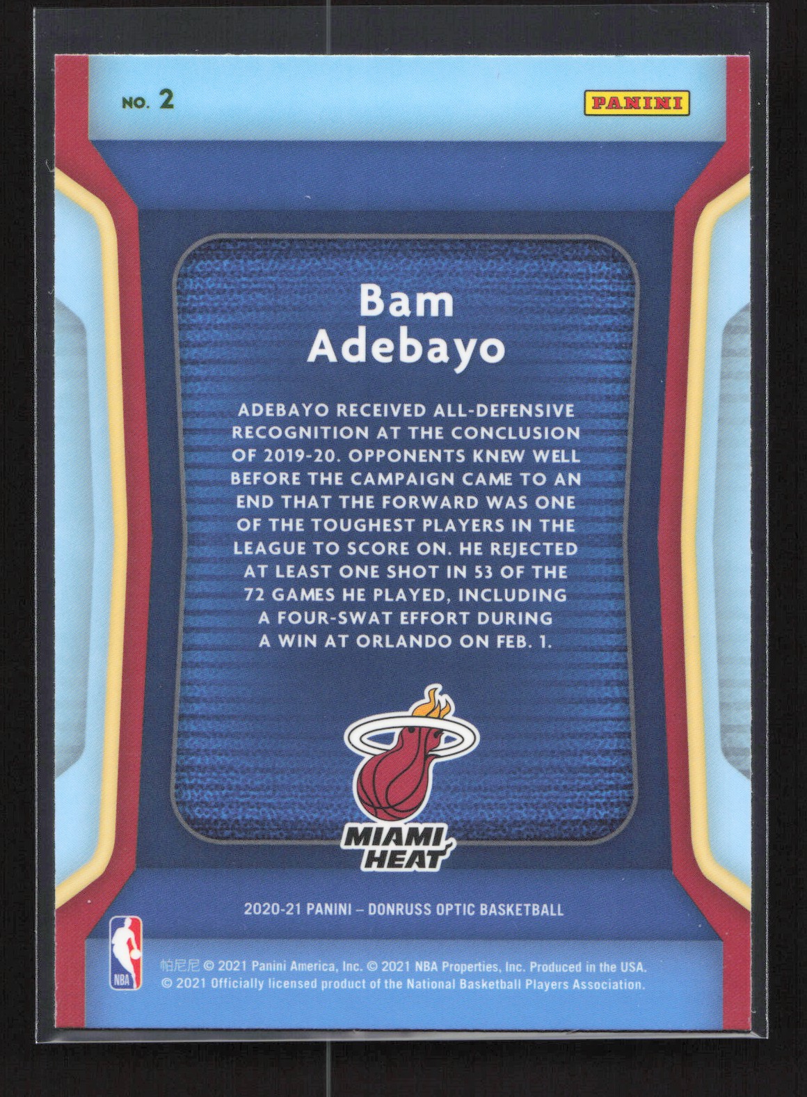 2020-21 Donruss Optic Air Defense Bam Adebayo #2 Miami Heat
