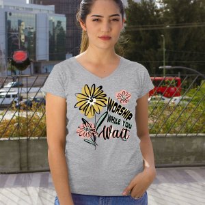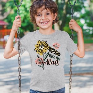 Worship While You Wait Youth T-shirt Christian God Inspiration Motivation Kids