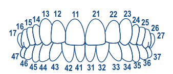 For incisors (upper & lower jaw, small, medium, large) - 44 pcs.