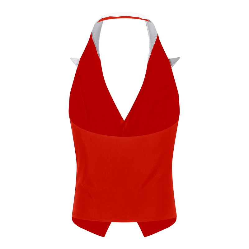 Waiter cosplay vest for men, contrast color lapel and halter style neck, front with button closure, easy to put on and take off.