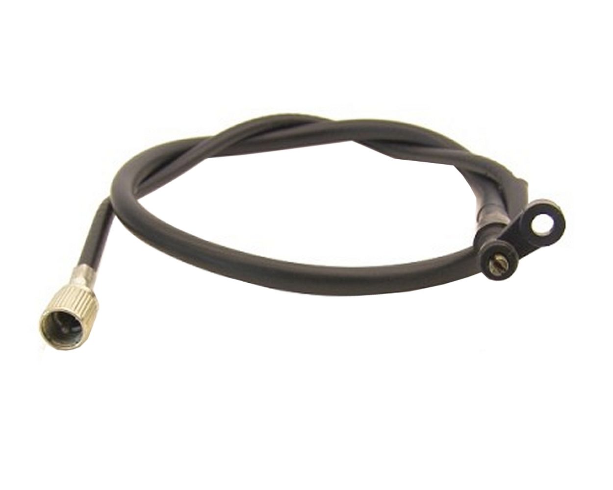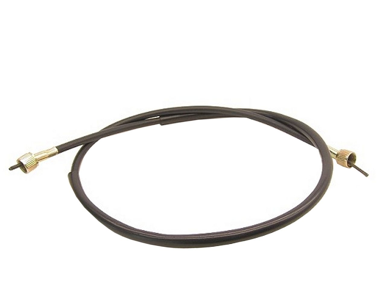 Die Tachowelle wird oben mit einer Überwurfmutter befestigt und hat einen Stift. Unten mit seitlicher Schraubbefestigung.