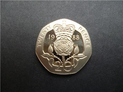1988 QUEEN ELIZABETH THE SECOND ROYAL MINT PROOF 20P COIN, THIS COIN IS CUPRO-NICKEL, SOME LIGHT TONING, THE COIN IS 21.40 MM IN DIAMETER AND COMES HOUSED IN A NEW LIGHTHOUSE CAPSULE.