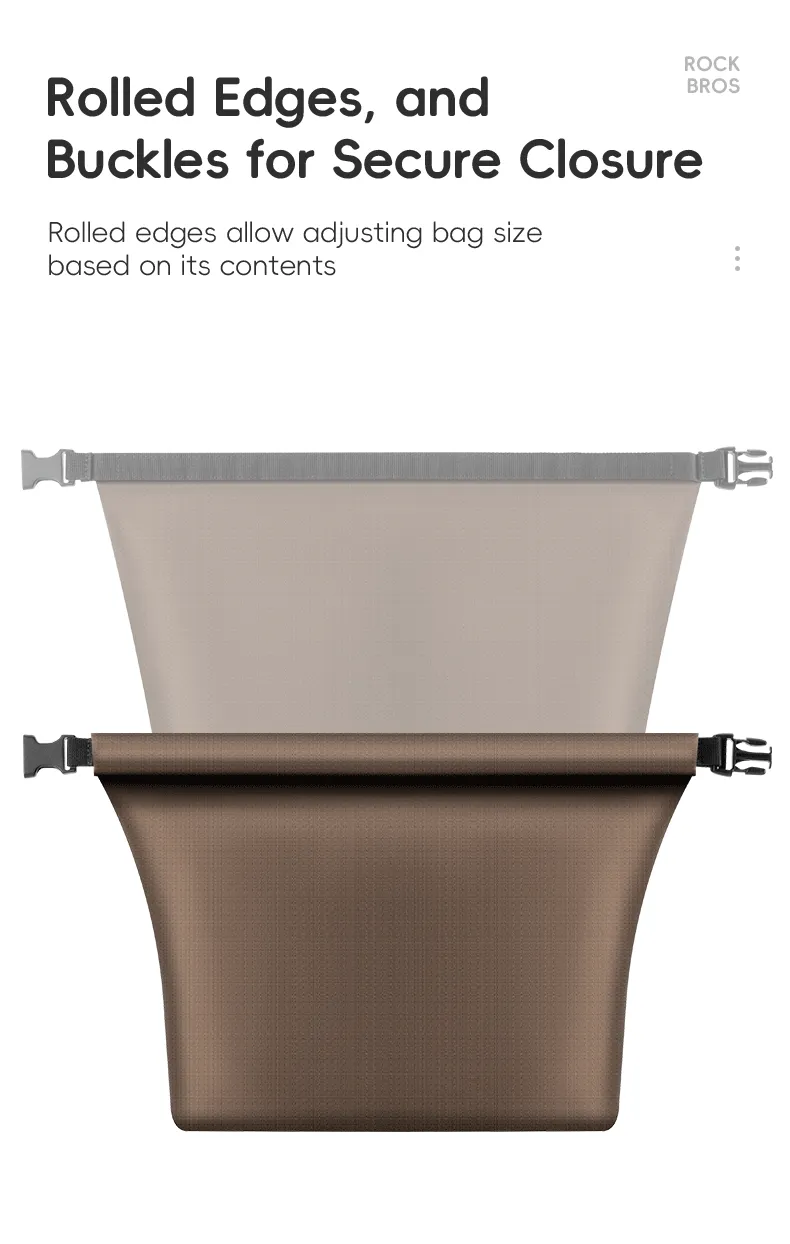 Adjustable: Velcro adhesive, rolled edges, and buckles for secure closure, allow adjusting bag size based on its contents;
