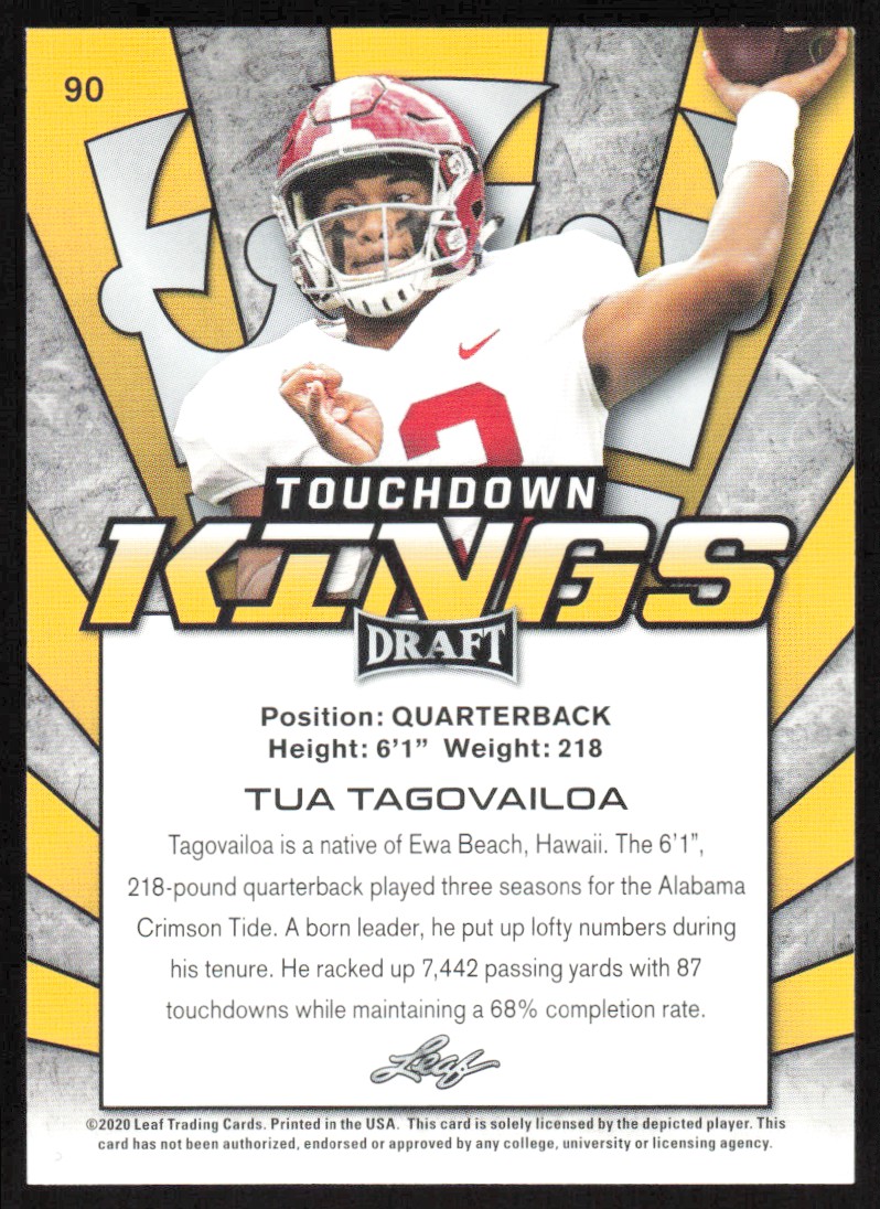 2020 Leaf Draft Touchdown Kings Tua Tagovailoa RC #90 Alabama Crimson Tide