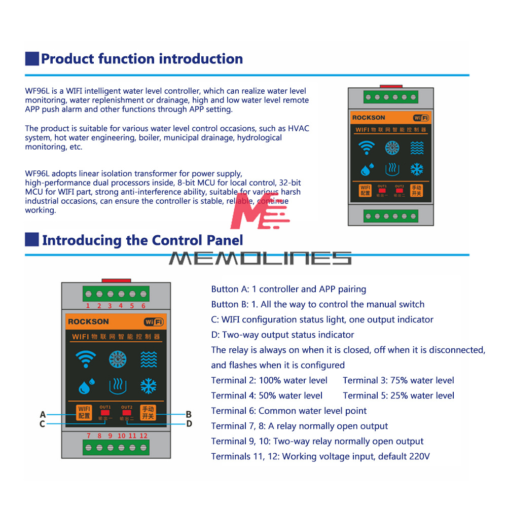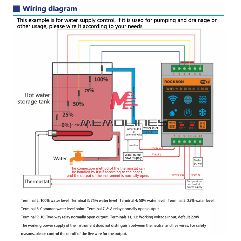 8. Two outputs, one water level control, one anti-dry function