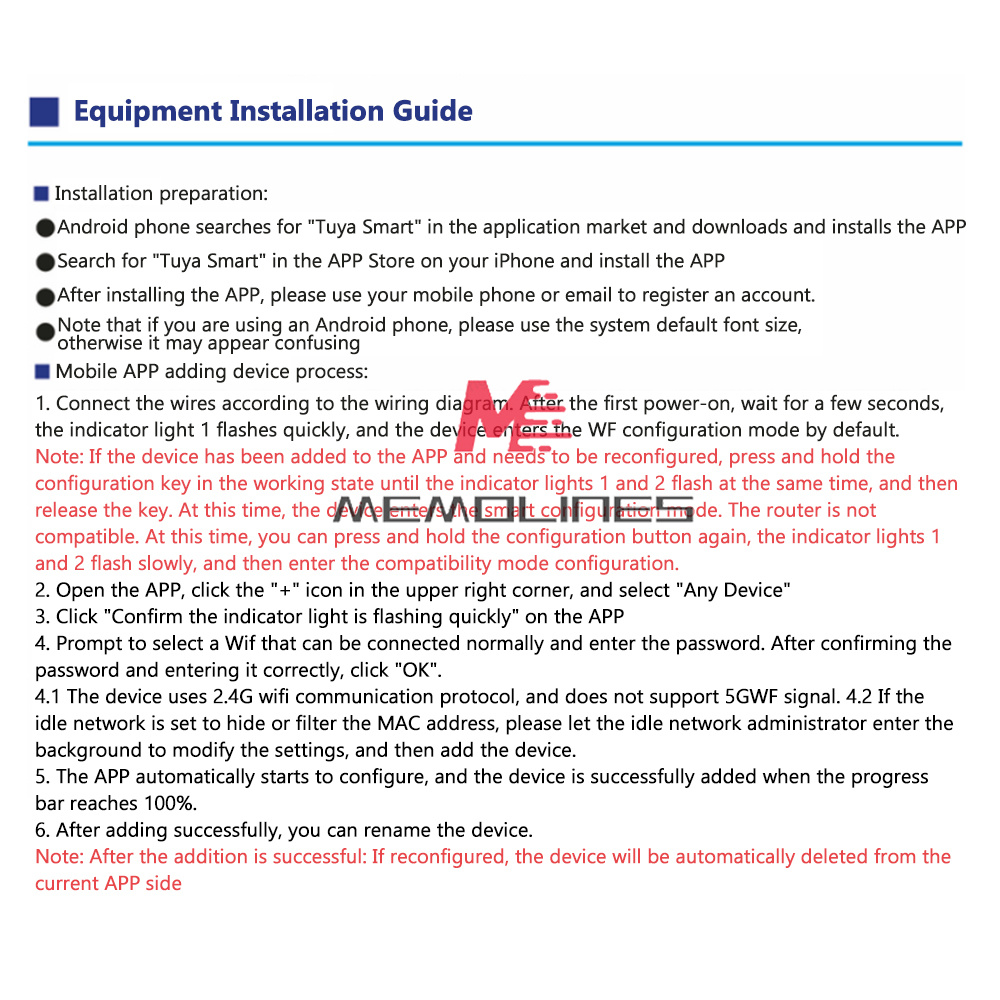 4.1 The device uses 2.4G wifi communication protocol, and does not support 5G network for the time being.