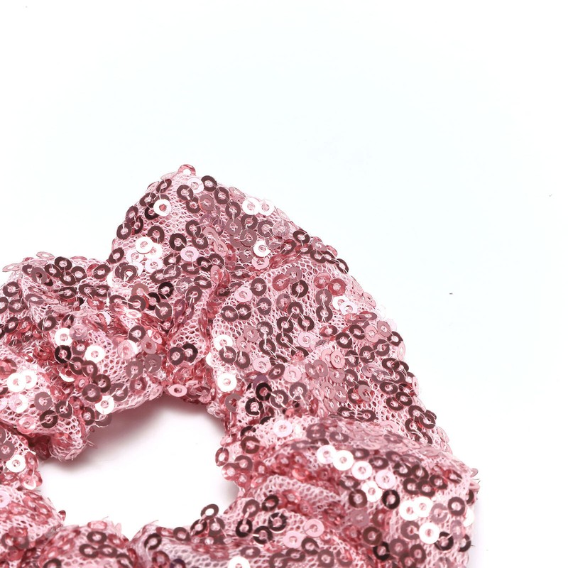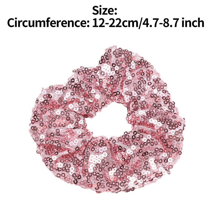 Wide and ruffled scrunchie with shiny sequins, is 12-22cm/4.7-8.7 inch in circumference.