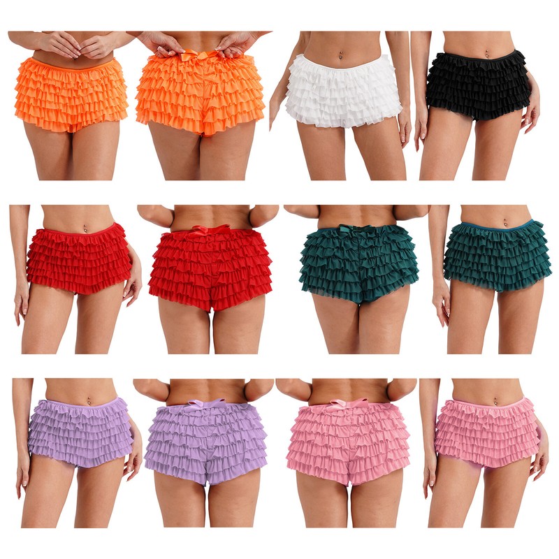 Designed with elastic waist, tiered mesh, multi-layer ruffles and a bowknot at back, mini pants is sexy and stylish for women.