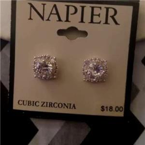 NAPIER Romantic Halo Silver Clear CZ Stone Stud Earrings***NEW!***ONLY **1** PAIR LEFT!!!
