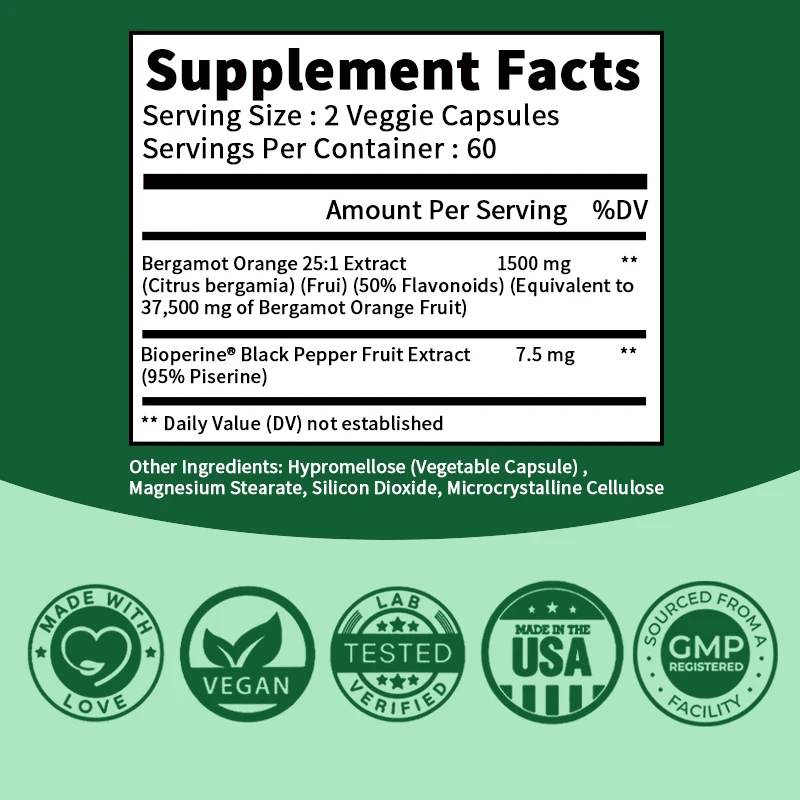 Citrus bergamot supplements help maintain healthy cholesterol levels. Contains antioxidants to help keep triglycerides and lipids in a healthy state.