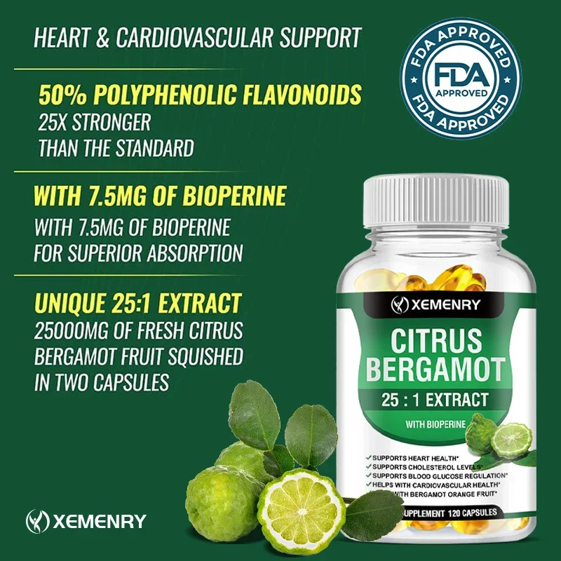 PREMIUM POWERFUL FORMULA: Each serving of Xemenry Citrus Bergamot contains 1,500 mg of 25:1 pure concentrated bergamot from the original source (bergamot orange fruit). To ensure maximum bioavailability and effectiveness, each serving contains piperine black pepper extract, which increases absorption and makes each dose more effective. This combination supports and improves various health indicators.