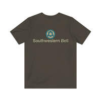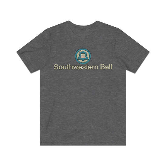 Southwestern Bell traces its roots back to The Missouri and Kansas Telephone Company, which was founded in 1882. It was consolidated under a single management unit of the Bell System with Southwestern Telegraph and Telephone Company of Texas-Arkansas, Pioneer Telephone and Telegraph Company of Oklahoma, and The Bell Telephone Company of Missouri—on March 1, 1912. These companies comprised the "Southwestern System" of the Bell System. The latter three companies were legally merged into Missouri and Kansas Telephone Company in 1917, which was renamed Southwestern Bell. This '70s design is a replica of a tee technicians were given to promote the company's customer service. This two-sided design includes both front and back prints… for the front only version, check our store!