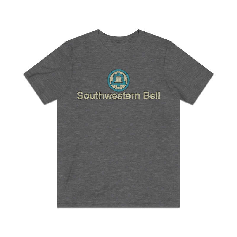 Description Southwestern Bell traces its roots back to The Missouri and Kansas Telephone Company, which was founded in 1882. It was consolidated under a single management unit of the Bell System with Southwestern Telegraph and Telephone Company of Texas-Arkansas, Pioneer Telephone and Telegraph Company of Oklahoma, and The Bell Telephone Company of Missouri—on March 1, 1912. These companies comprised the "Southwestern System" of the Bell System. The latter three companies were legally merged into Missouri and Kansas Telephone Company in 1917, which was renamed Southwestern Bell. This '70s design is a replica of a tee technicians were given to promote the company's customer service. This two-sided design includes both front and back prints… for the front only version, check our store! Details Like all our designs, this one is treated with our signature ‘relic-ing’ process which includes our own secret recipe of hand-painted chipping, cracking, fading, and just the right touch of yellowing to ensure that it looks the part of a true vintage imprint.** We lay these works of art down on premium Bella+Canvas 3001 Unisex Jersey Short Sleeve Tees, one of the softest, best-wearing t-shirts available today, via state of the art direct to garment (DTG) printing which allows us to create a vintage effect that simply can’t be accomplished with other printing methods. In short, these shirts are everything you’ve dreamed of and more – it feels soft and lightweight with just the right amount of stretch making it comfortable and flattering for both men and women. 100% combed and ring-spun cotton* Fabric weight: 4.2 oz (142 g/m2) 30 single Tear-away label Shoulder-to-shoulder taping Side-seamed Retail fit Runs true to size Sizing Not sure what size is your best fit? We recommend taking one of your current t-shirts, laying it flat and measuring it. The measurements in the chart below are taken with the shirt laying on a flat surface. To get the length, measure from the high shoulder point down to the bottom of the shirt. To get the width, measure approximately 1-inch below the armhole, across the chest, from seam to seam. While our tees are all made using premium, pre-shrunk, ring-spun cotton, there can be some shrinkage depending on your personal wash and dry cycles. With that said, if you're on the fence, we always suggest going up a size. S M L XL 2XL 3XL Width 18 20 22.01 24.02 25.99 28 Length 28 29.02 30 31.03 32.01 33 Sleeves 8.9 9.18 9.45 9.73 10 10.4 All sizes are provided in inches! *Heather colors are 52% combed and ring-spun cotton/48% polyester. Athletic and Black Heather is 90% combed and ring-spun cotton/10% polyester. Ash color is 99% Airlume combed and ring-spun cotton and 1% poly. **Due to the nature of the printing process and different sizes of shirts offered, imprint position and scale may vary slightly from the product images, but we do our best to be as accurate as possible.