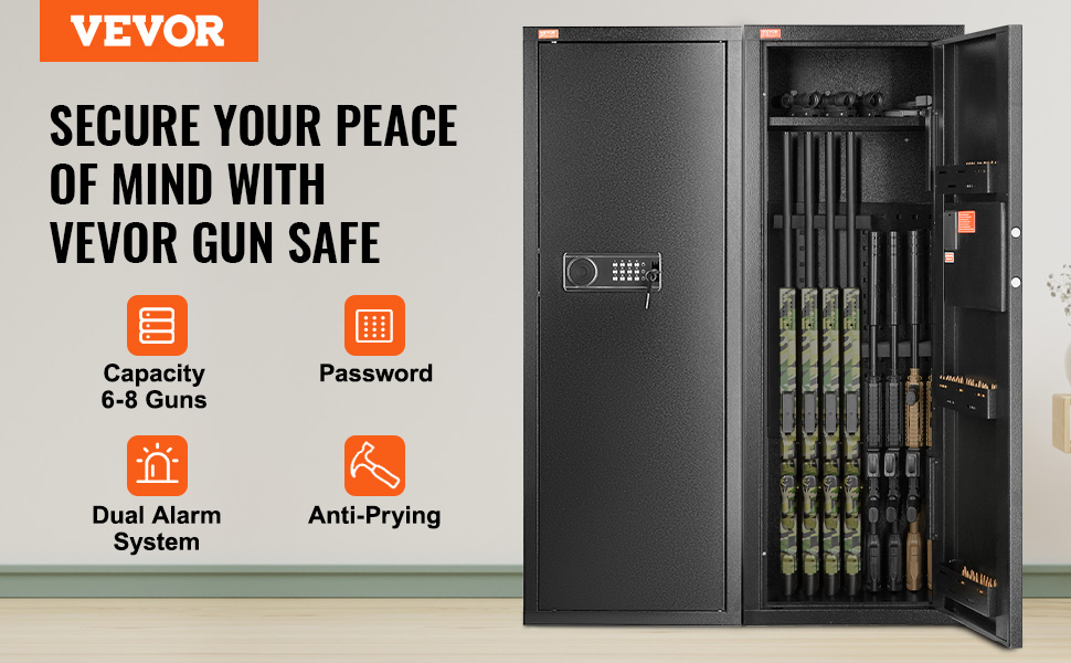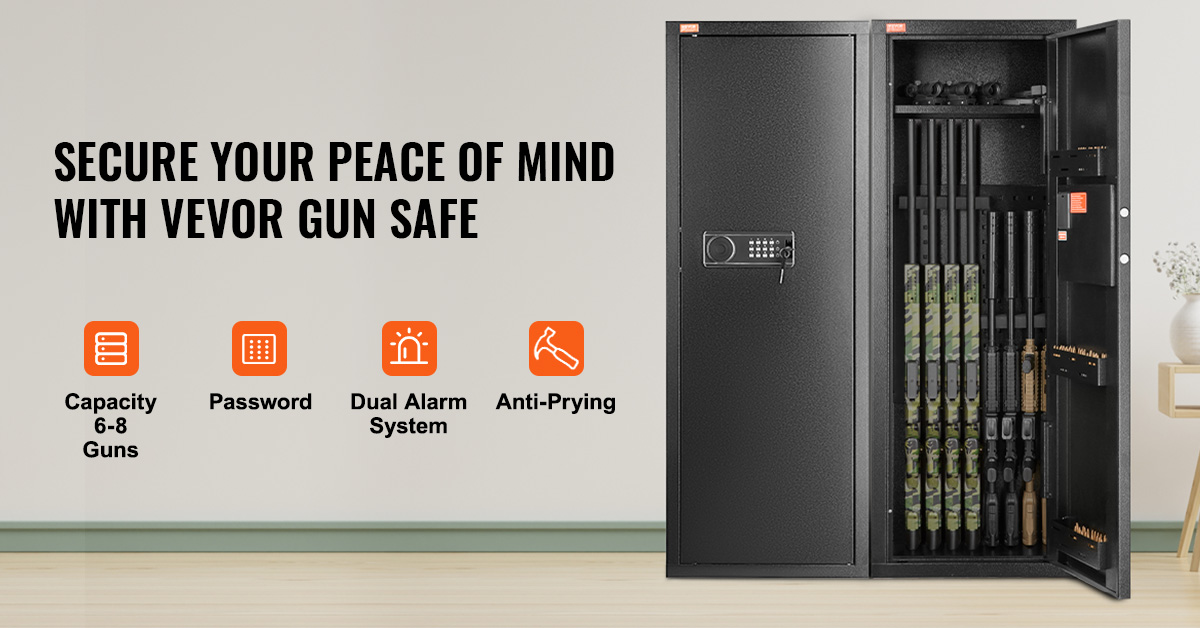 Protect your loved ones and your valuable firearms with the VEVOR gun cabinet - the ultimate storage solution for firearm owners. With its advanced security features and durable construction, you can trust that your firearms are always in good hands.
