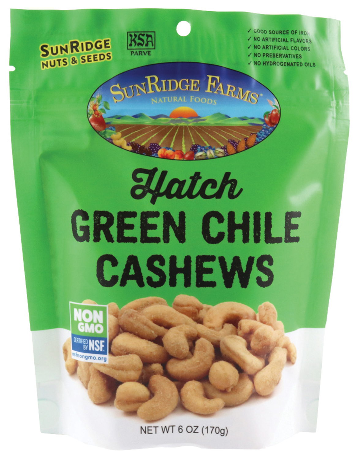 Ideal for health-conscious consumers, outdoor enthusiasts, and chili lovers, these spicy green chile cashews provide a satisfying protein boost and a fiery flavor punch. Whether enjoyed as a quick snack, party appetizer, or topping for salads and dishes, they're designed to elevate your snack game. Durable and resealable, the 6 oz package keeps your cashews fresh and flavorful, making Sunridge Farms Spicy Green Chile Cashews the perfect mix of spicy, crunchy, and nutritious. Elevate your snack arsenal and discover the irresistible taste of bold, spicy green chile with Sunridge Farms today!