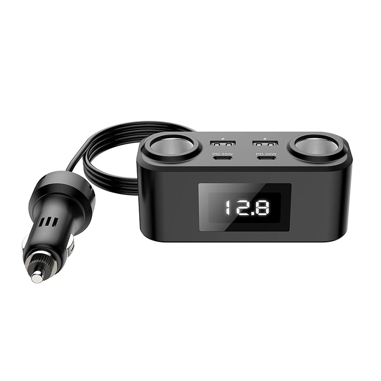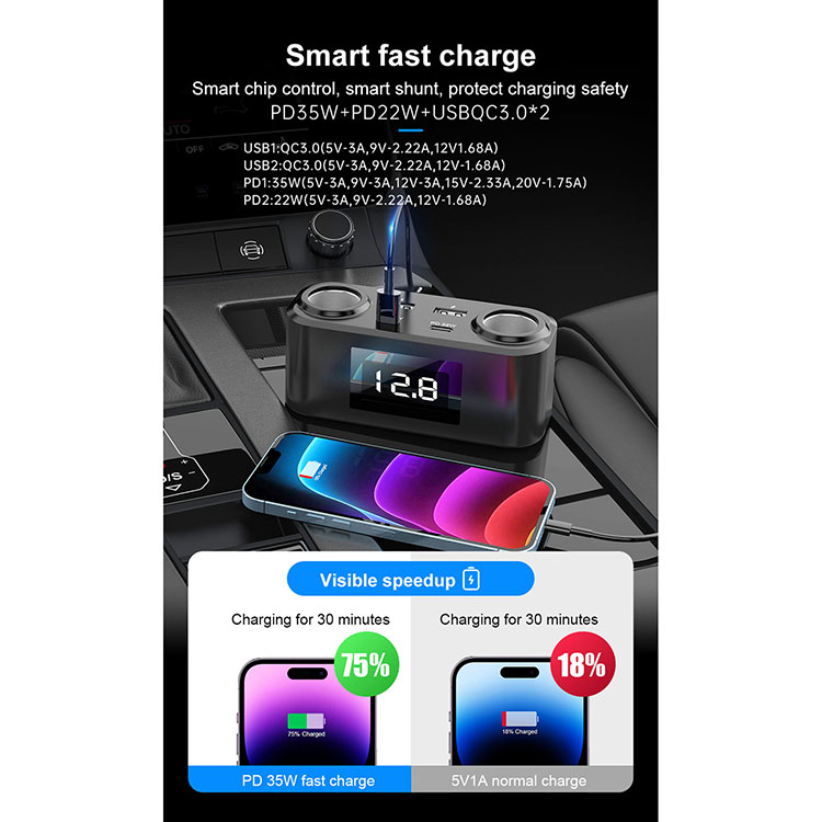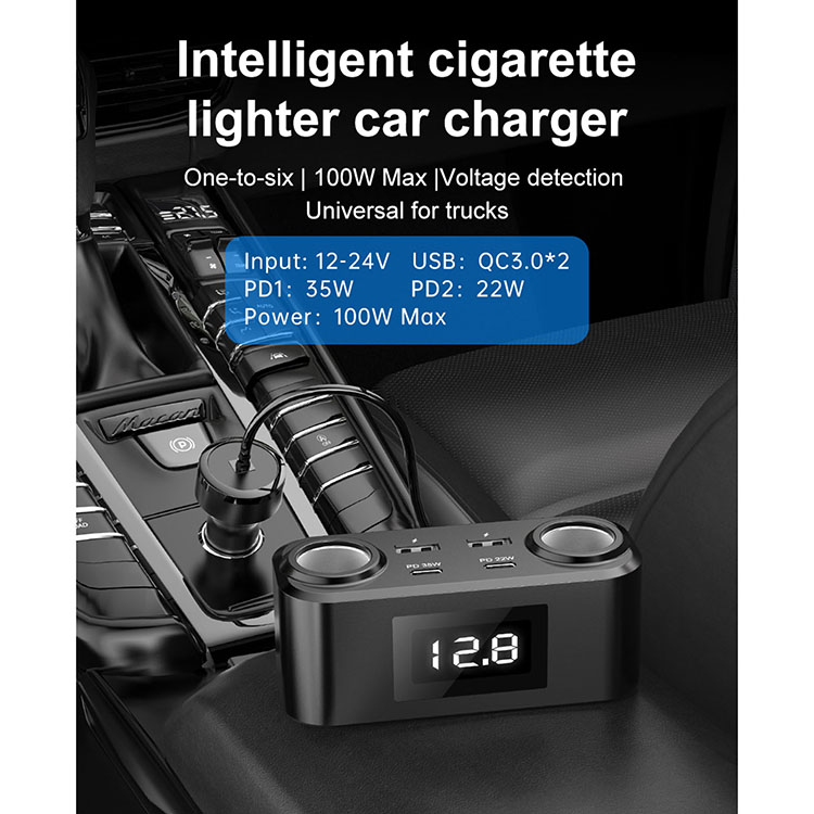 1 to 4 Multi-Port Car Cell Phone Charger Car Cigarette Lighter Charging Cell Phone Adapter PD+QC Fast Charger