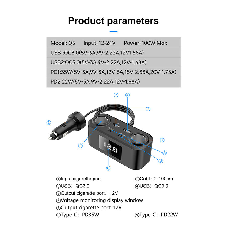 l Thickened hardware shrapnel on both sides, firmly lock the cigarette lighter port