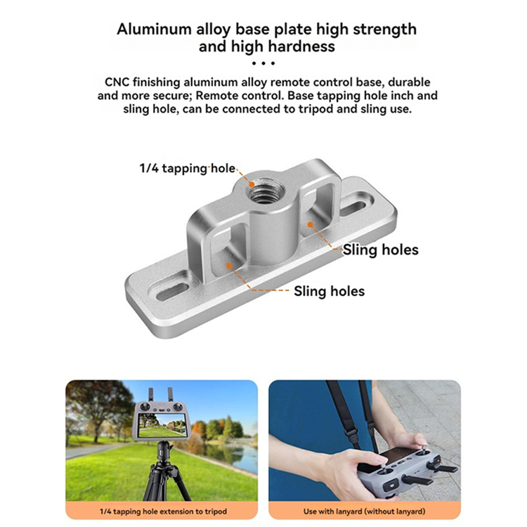 l CNC machined aluminum remote control base, durable and more at ease; remote control base 1/4 threaded holes and strap holes, can be connected to the tripod and strap to use, no need to disassemble after use does not affect the storage