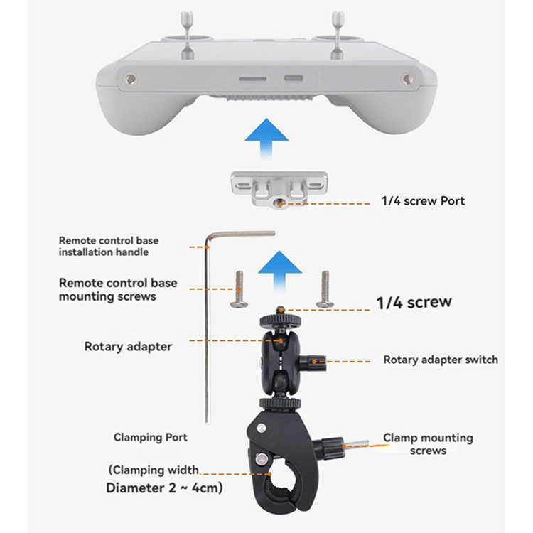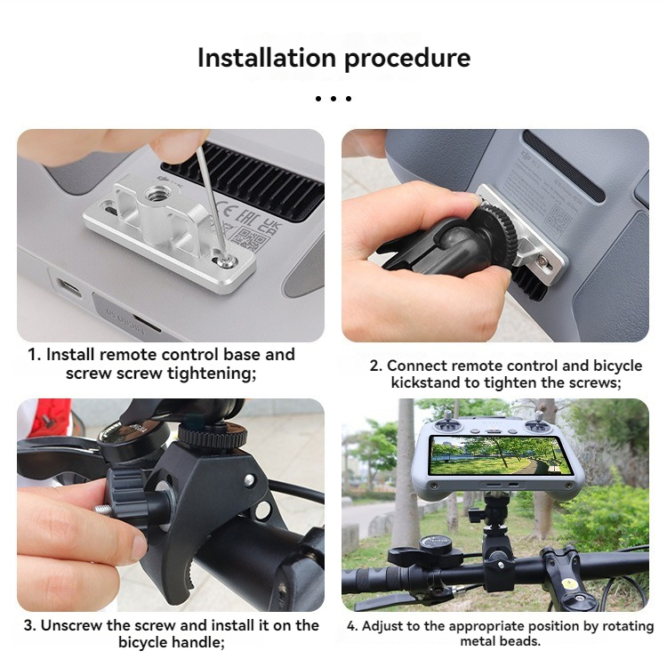 l 1/4 screw universal head bracket can be used for RC/RC2 with screen remote control and DJI camera OSMO Pocket 3/Action and other sports cameras, bicycles, bicycles, motorcycles, electric cars (as long as the tube diameter is in the 2cm-4cm can be used) and so on can be used
