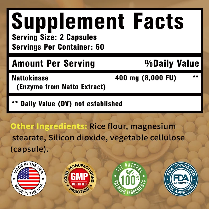 Maximum Strength 8,000 FU - The potential benefits of Nattokinase extend beyond cardiovascular health. Can provide a sense of balance and well-being. This is a natural enzyme that enhances overall immune function. Helps with blood pressure, joint, respiratory and cognitive health.
