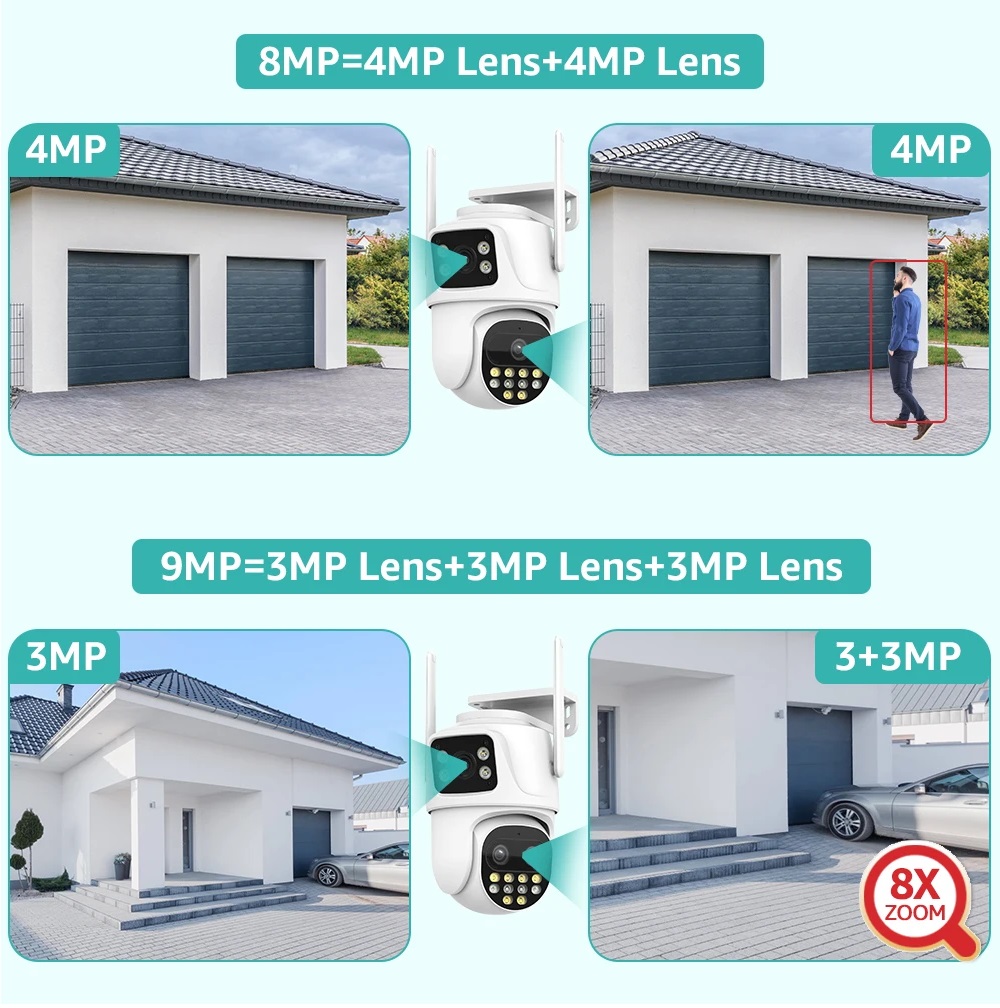 Three Lens/ Dual Lens 4K 8MP 8X Digital Zoom WIFI Wireless AI Human Auto