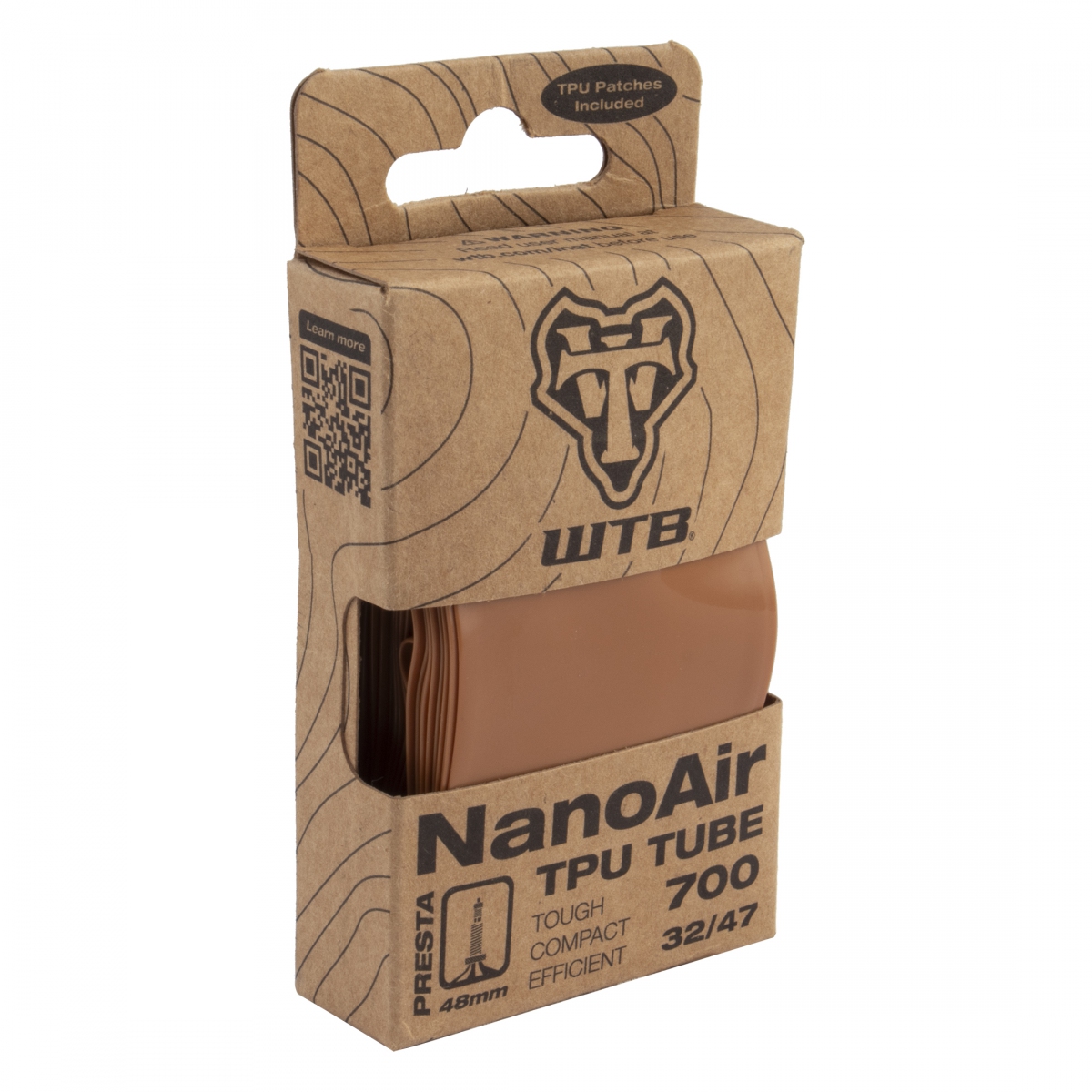 Lighter, more compact, and more durable. Yep, you get all three. The NanoAir TPU (Thermoplastic Polyurethane) tubes were designed to be compact and pack down to one third of the size of a traditional tube. It’s 60% lighter than a traditional tube, making it a great option to reduce rolling weight and easy enough to carry a spare. The NanoAir TPU tubes are tough, with a special construction/layup of material these are more durable than traditional butyl tubes. Having one of “those days,” and you ride through a patch of thorns and get another flat? Don’t worry, each tube includes a few extra TPU patches to keep you rolling.