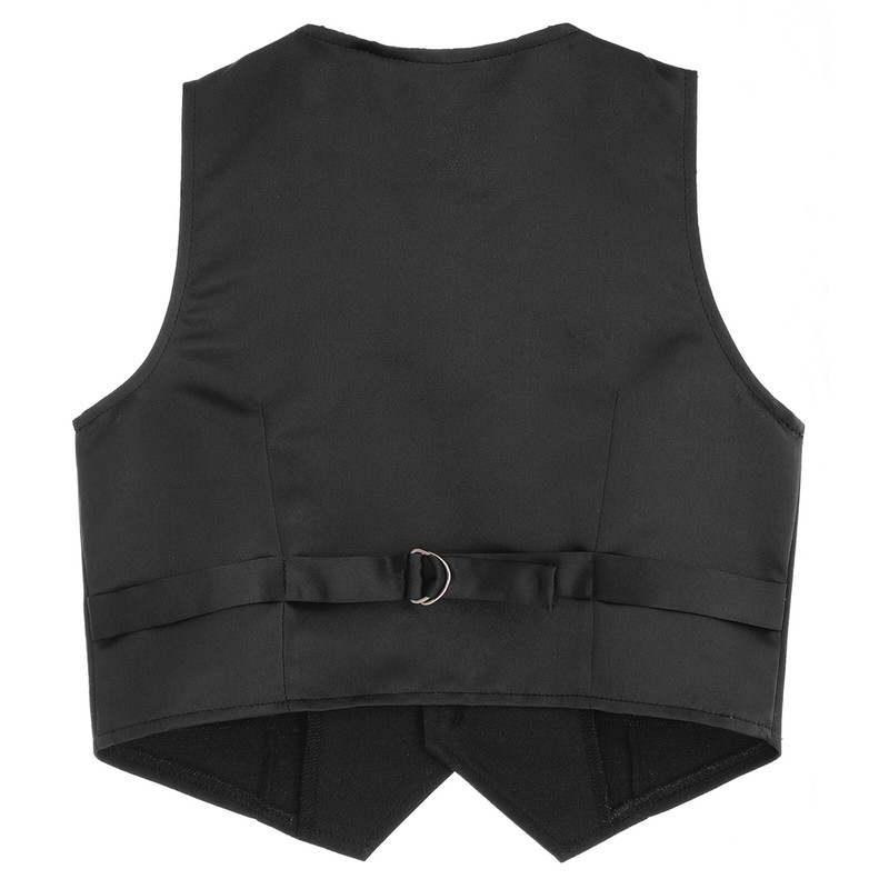 Vest designs with v neck and button down, pointed hem and decorative pockets, adjustable back strap.