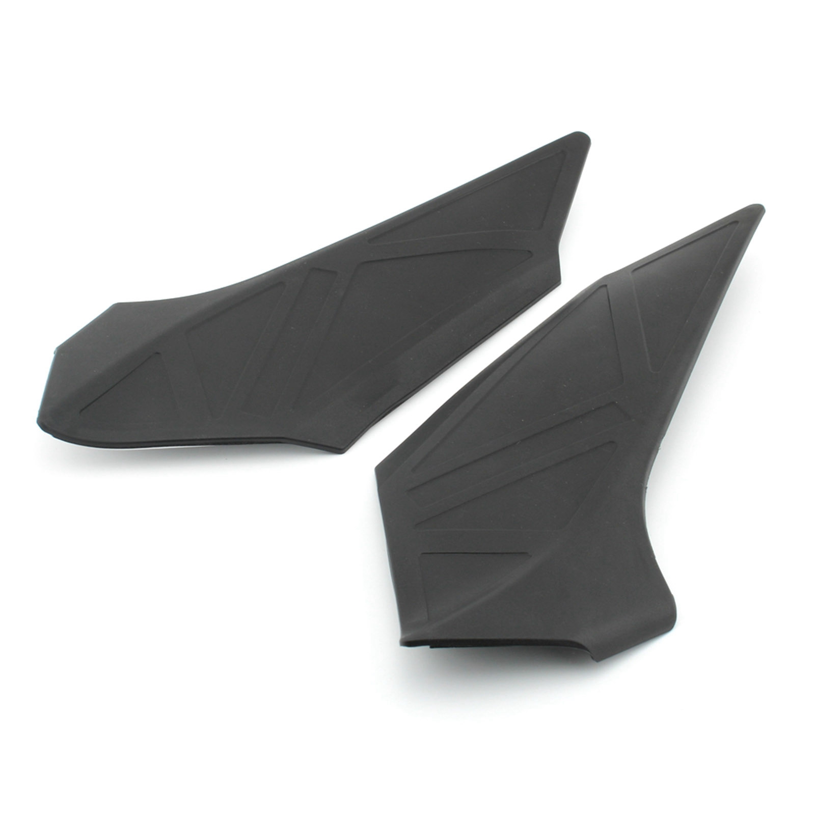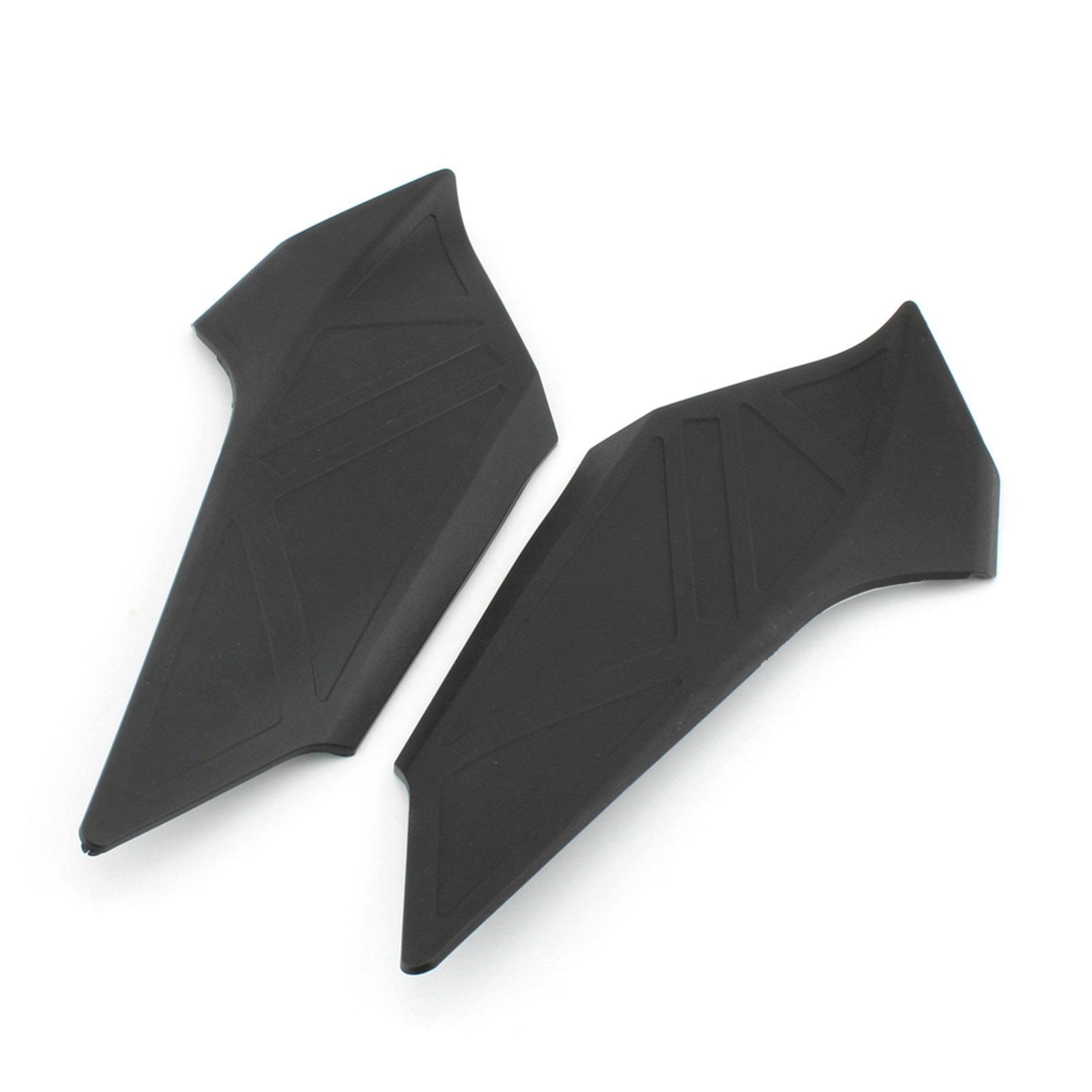 Frame protectors made of black plastic prevent scratches and reduce the risk of motorcycle boots being rubbed on rough off-road trails.