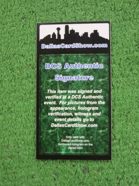 This item comes with a numbered hologram sticker and a Certificate of Authenticity card from Dallas Card Show Authentic (DCS).