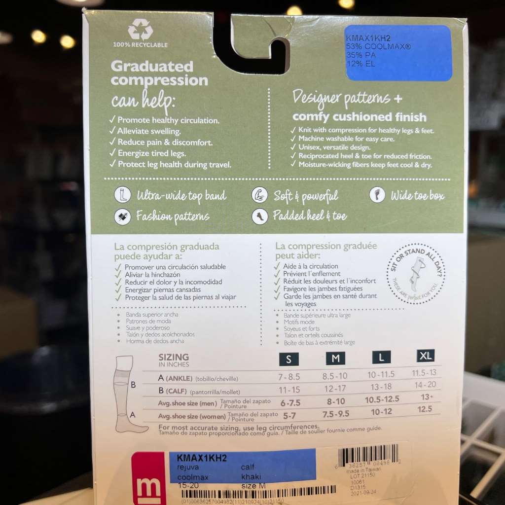 Whether worn at work, while traveling, or for a dressy occasion, Rejuva’s CoolMax knee high socks keep you cool, dry, and comfortable from day’s start to finish. Featuring a graduated compression profile, your legs will feel light and energized so you can be a better you.
