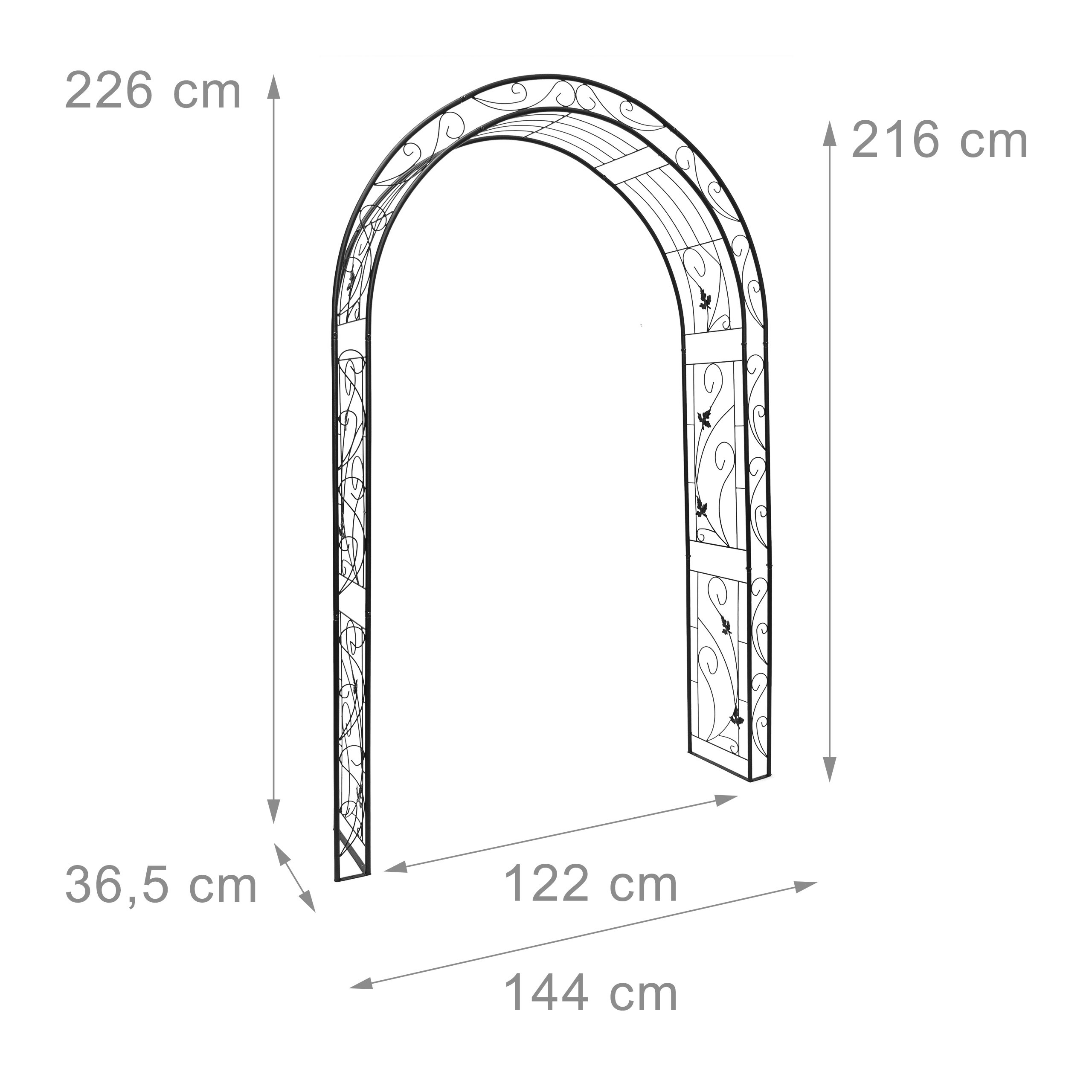 Arco per rose dal design romantico Pergolato in metallo nero 7,8 kg 216 cm
