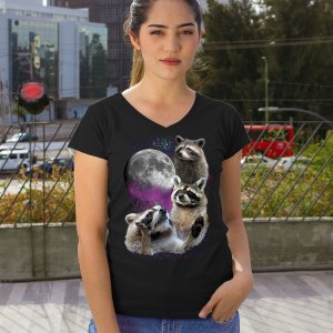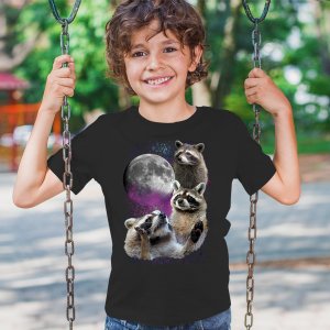 Racoons Howling at the Moon Youth T-shirt Funny Wildlife Animal in Space Kids