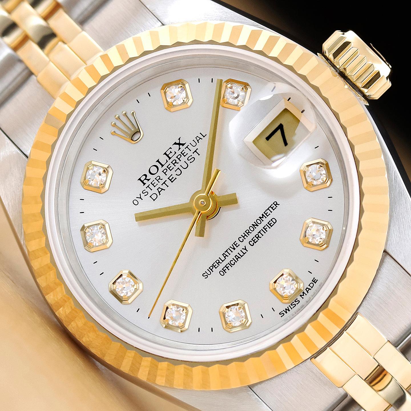 ROLEX LADIES DATEJUST 69173 SILVER FACTORY DIAMOND DIAL 18K GOLD STEEL WATCH