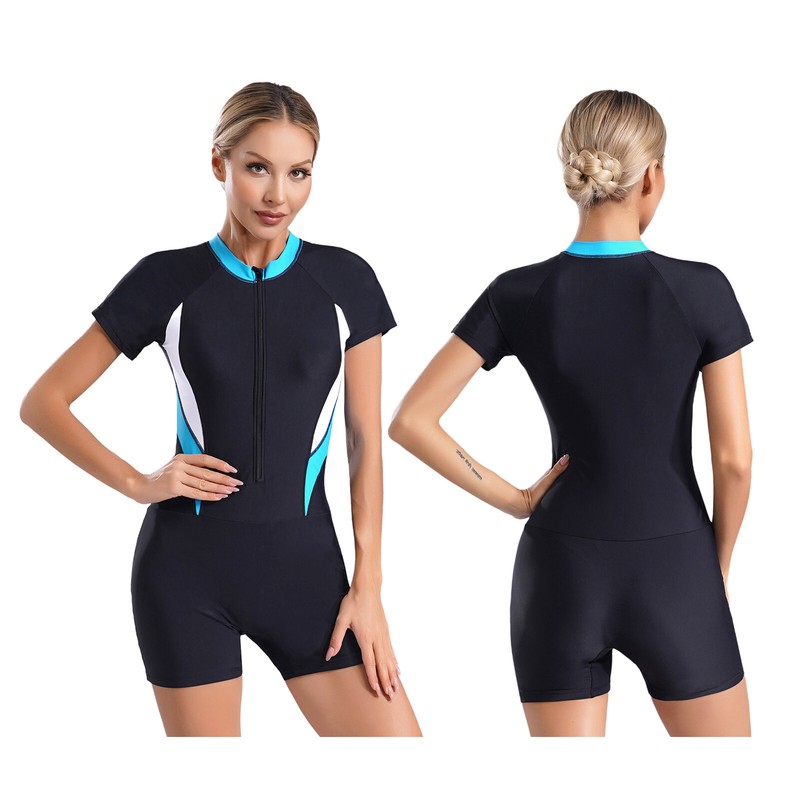 One piece athletic swimsuit for women, front zipper with zip guard is easy and secure to wear.