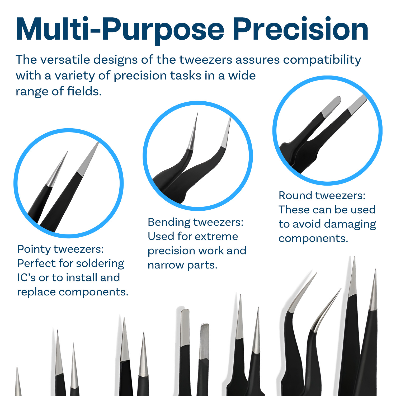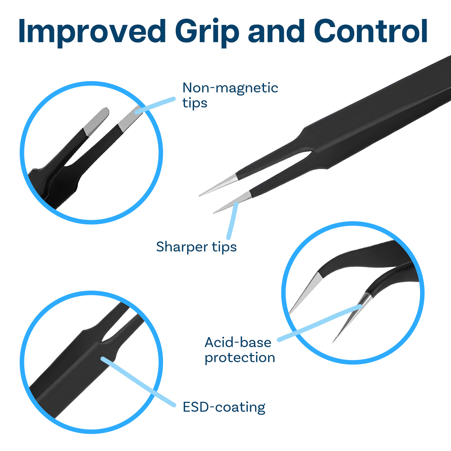 Il design facile da usare delle pinzette offre una presa confortevole, consentendo agli utenti di mantenere un controllo preciso durante le attività dettagliate. Questo design accurato migliora l'efficienza complessiva del lavoro.