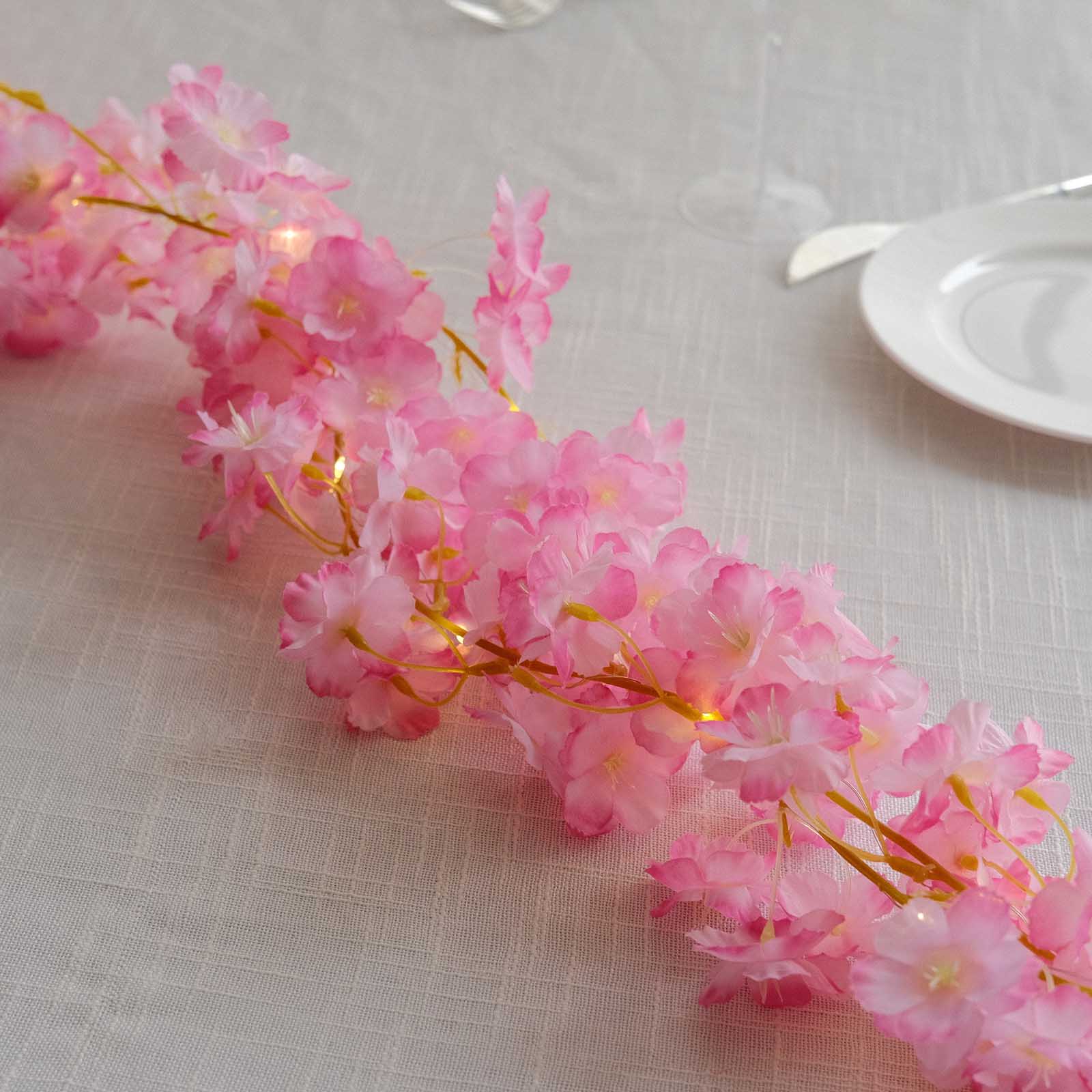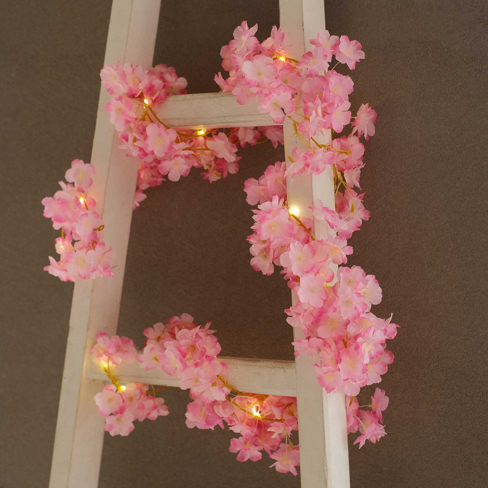 There are 20 LED lights and 138 cherry blossom per garland.