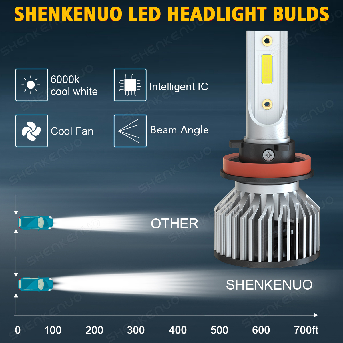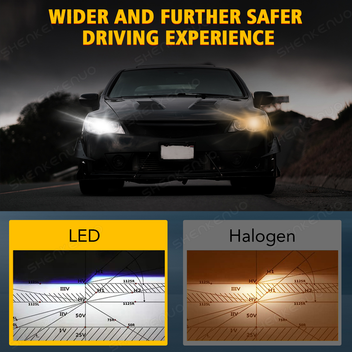 【Perfect Beam Pattern】The LED headlight high low beam perfectly mimic the original halogen beam pattern, whatever high beam or low beam, delivering wider angle and farther range light on the road. Giving your driving experience and driving safety the boost you've been looking for. No glare to oncoming traffic, with no glare or dark spots reduces your driving stress and exhaustion. Ditch the dim yellow halogens.