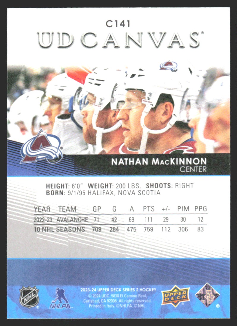 | 2023-24 Upper Deck UD Canvas Nathan MacKinnon #C141 JW1 |