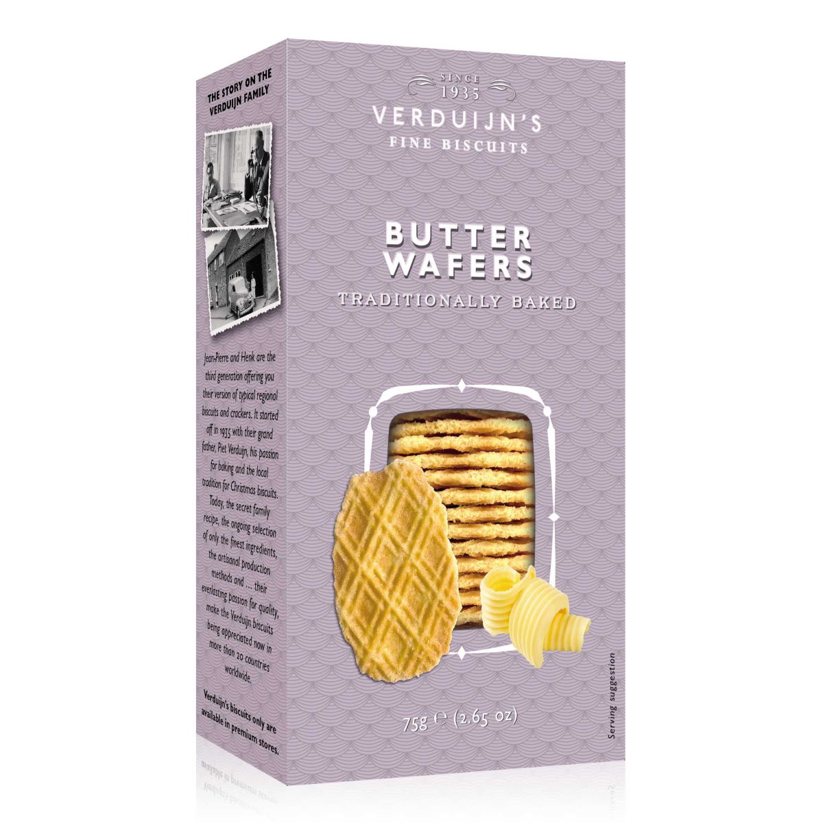 Verduijn's ist ein erfolgreiches Familienunternehmen in den Niederlanden, das süße und salzige Kekse, Waffeln und Cracker herstellt. Dank der Initiative von Piet Verduijn aus dem Dorf Breskens in Zeeuws-Vlaanderen wurde ein originelles Keksrezept entwickelt, das seit 1935 erfolgreich ist. Seine Ideen waren nicht nur in den Niederlanden, sondern auch im Ausland erfolgreich. Wir präsentieren die feinen und überraschenden Käsewaffeln von Verduijn, eine typisch niederländische Spezialität für jedermann. Dieses besondere Gebäck wird nach traditionellen Rezepten und unter Verwendung natürlicher Zutaten hergestellt. Sie sind ein wahrer Genuss für jede Gelegenheit.