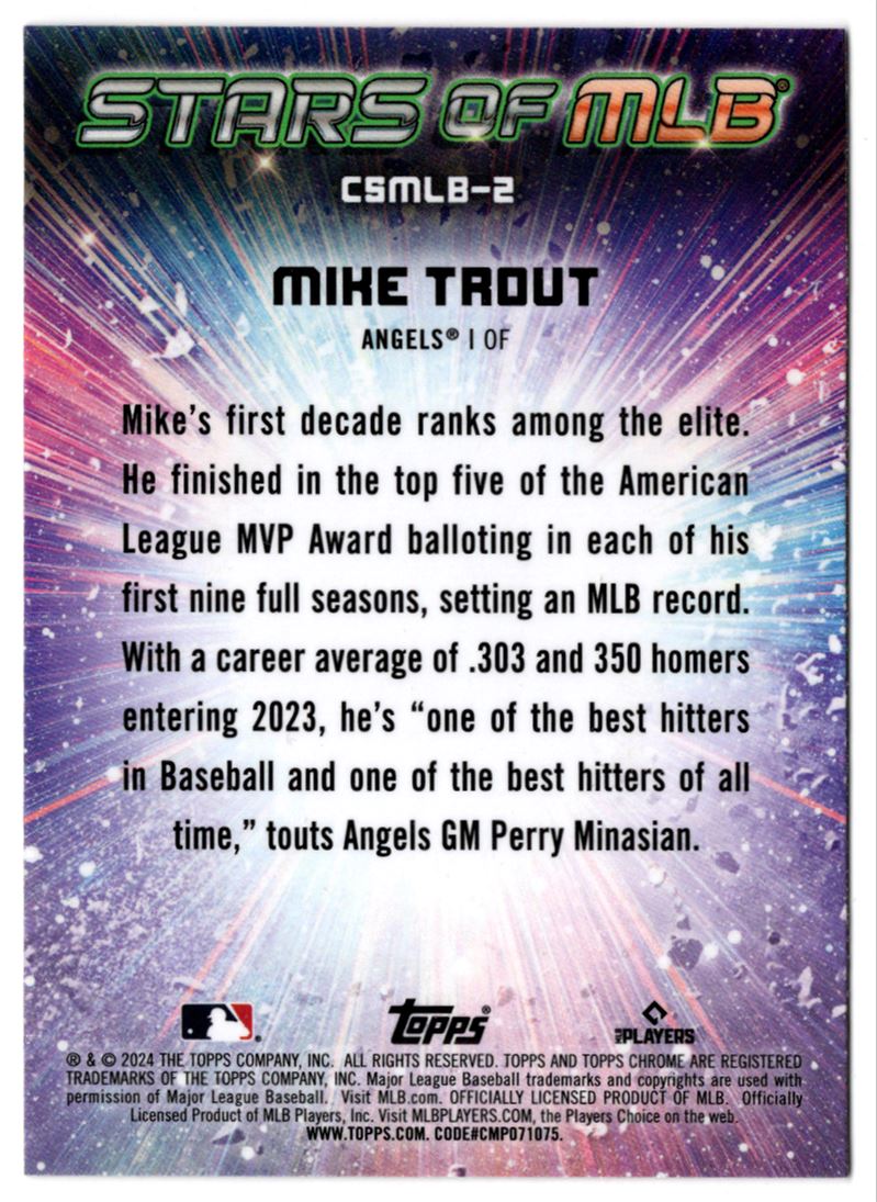 | 2024 Topps Stars of MLB Chrome Mike Trout #CSMLB-2 Los Angeles Angels |