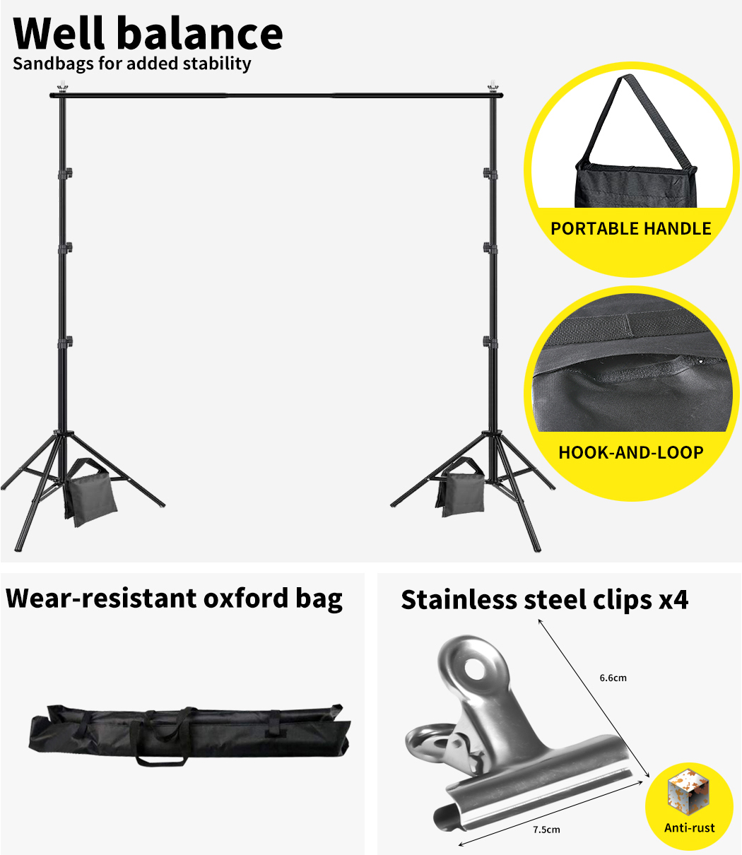 Photography Backdrop Stand Kit Adjustable Background Support for Photo Studio