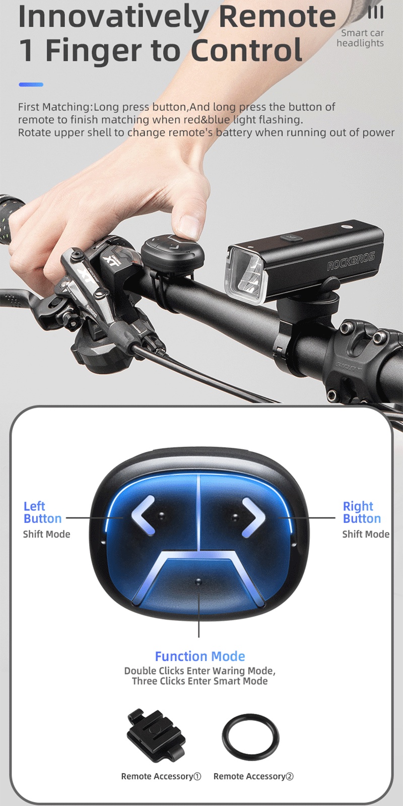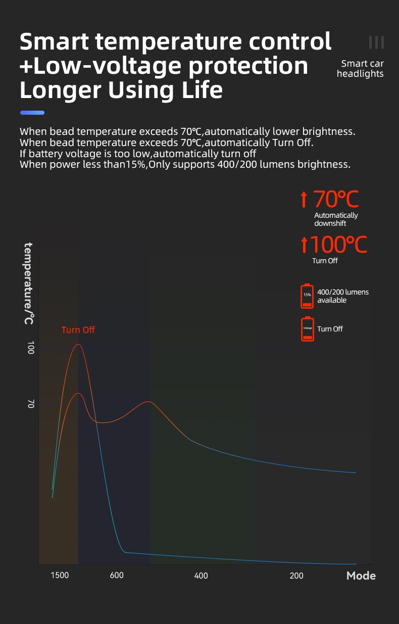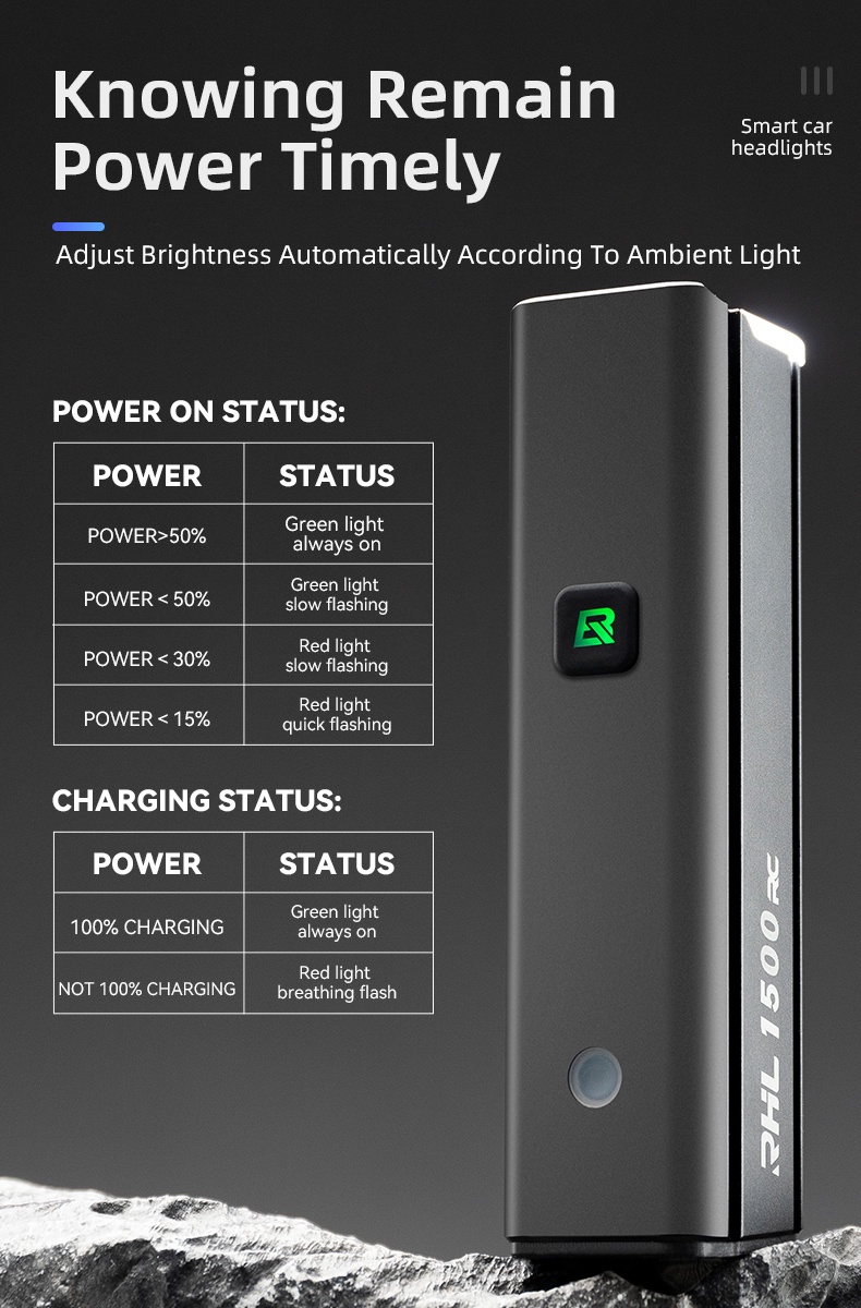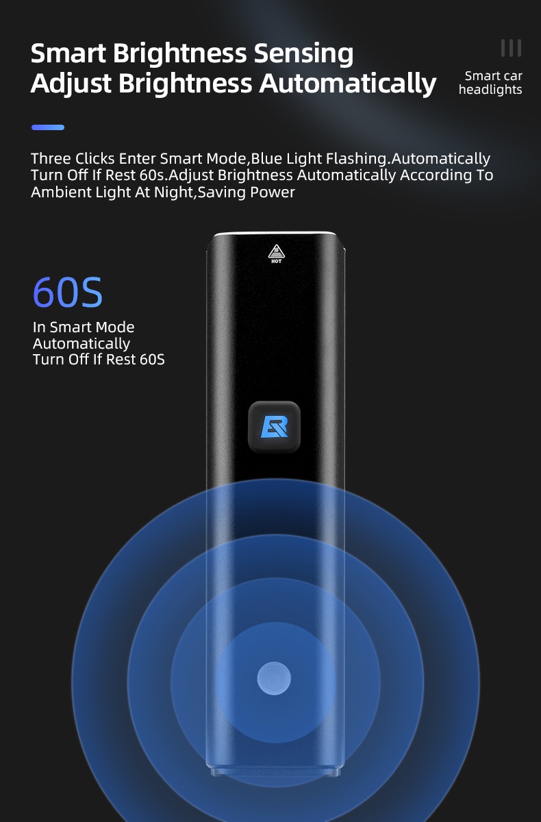 Smart Sensing & Memory Mode--Equipped With light sensor and temputer control system, it will automatically change the brightness to fit for the different environment. This light also has the memory function, which can store the last used gear to the next time. Makes cycling safe and convenient.