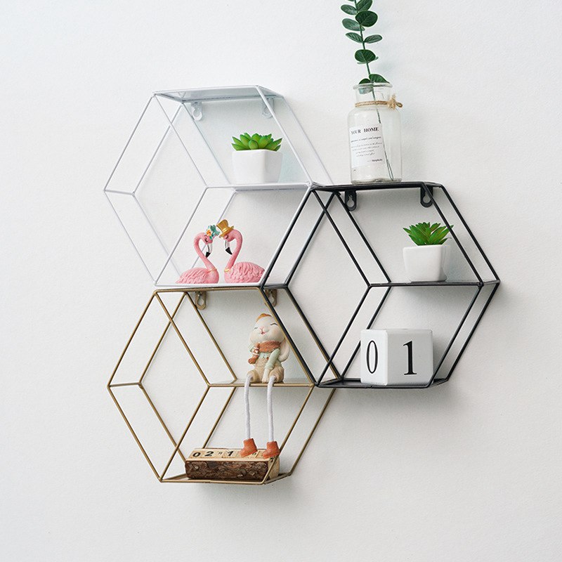 Unique in design, simple yet elegant. Geometric shelf can help to add a charm and character to any space.