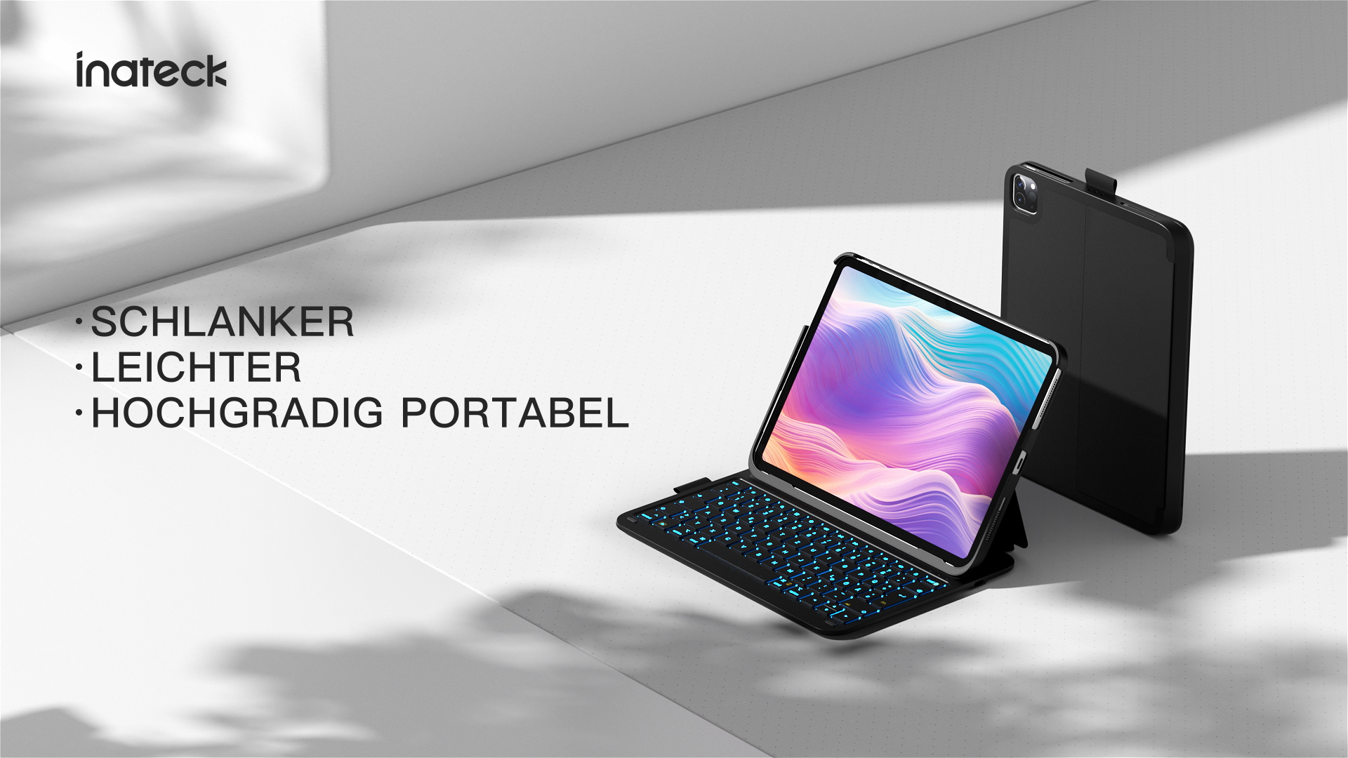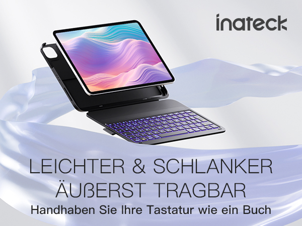Inateck iPad 10 Generation Hülle mit Tastatur, für iPad 11 Gen. A16 2025 11 Zoll, Air 11 Zoll M3/M2 (2025/2024),Air 5/4, Pro 11 4/3/2/1,QWERTZ,Ultraleichte Tastatur mit Stifthalter,AirTap BK2007