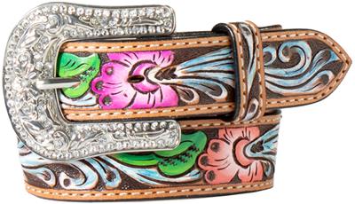 Angel Ranch Western Girl Belt Leather Youth Tooled Painted Multicolor D130003497
