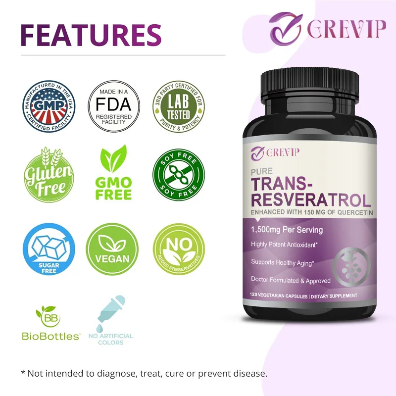 SUPPORTO NATURALE - Le nostre capsule sono formulate con 1350 mg di trans-resveratrolo puro e 150 mg di quercetina per aiutarti a mantenere la pelle giovane e vibrante, ridurre i segni dell'invecchiamento e sostenere la funzione articolare, cerebrale e del sistema nervoso.