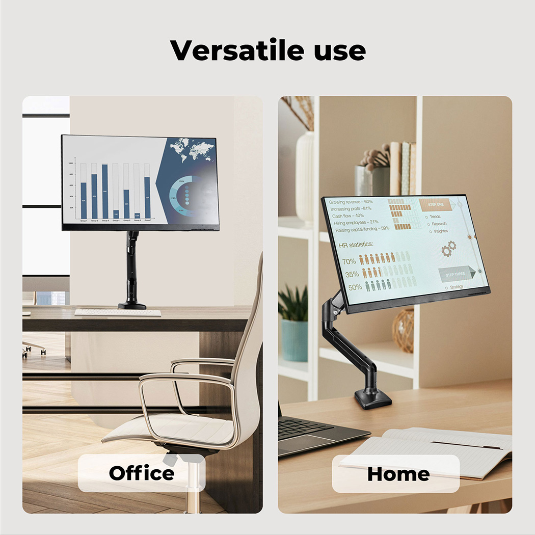 Adjust your monitor to the perfect height and angle with this flexible desk mount. The full-motion range allows you to swivel, tilt, and rotate your screen for the ideal viewing experience. Use it as a monitor stand riser to reduce eye and neck strain while boosting productivity.