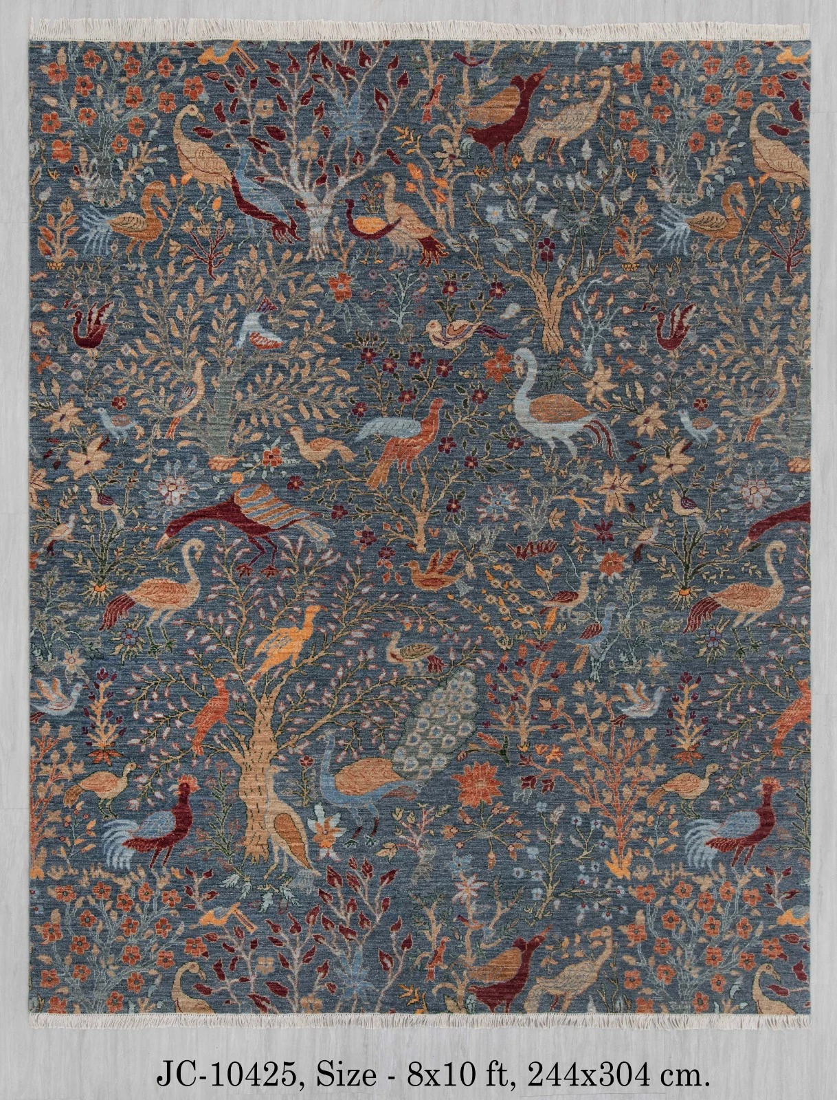 8x10 Gray Birds Peacock Garden Scene Handmade Fine Quality CUSTOM SIZE Rug