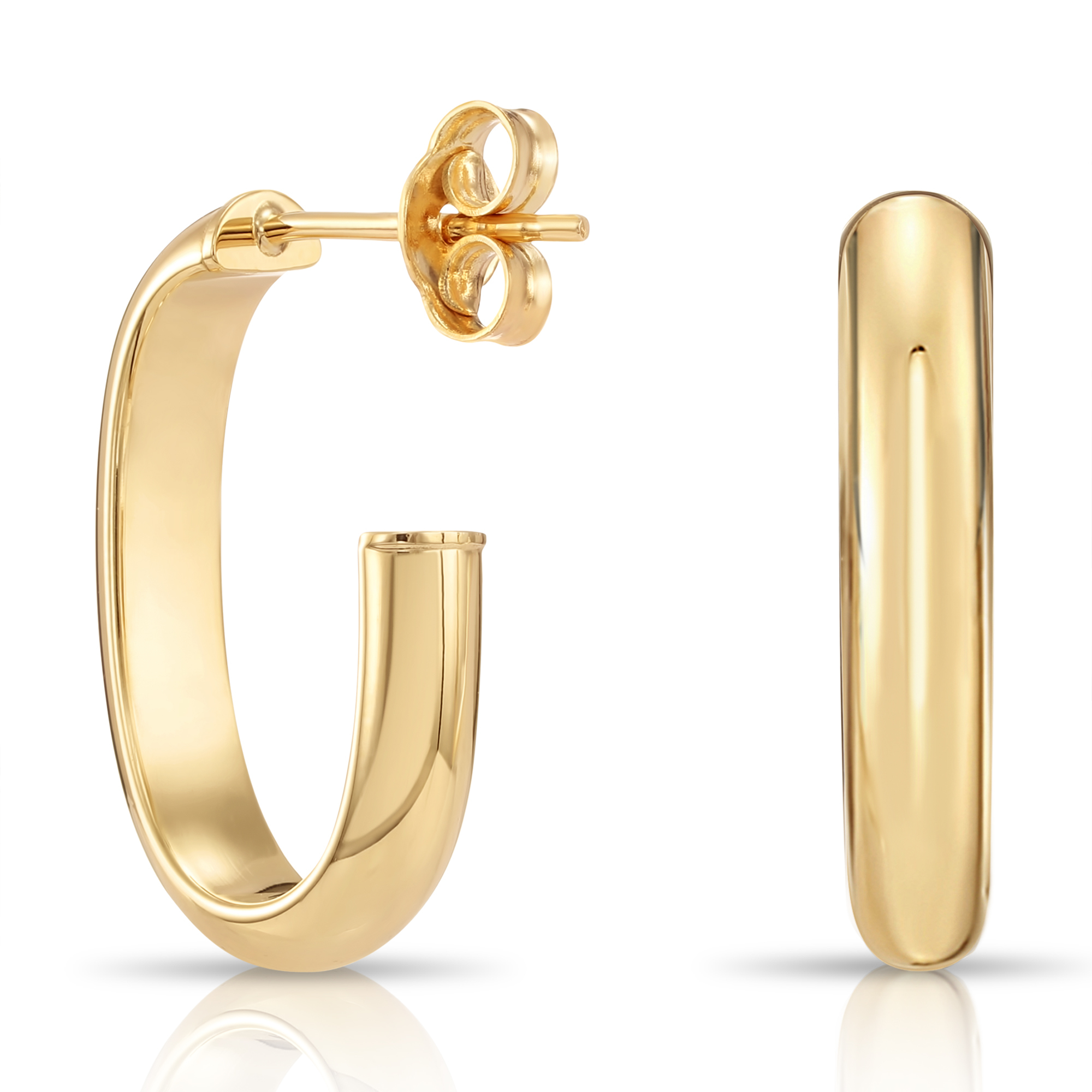 These exquisite TILO Jewelry earrings are absolutely gorgeous! They showcase a stunning oval-shaped design made of 10k real solid gold and the hand-polished finish gives them a beautiful shine. Forget about the boring, plain hoop earrings and elevate your style with these unique yet statement-making earrings, perfect for your Zoom meetings that will make sure you're the only one in the room with a pair. With the comfortable and secure butterfly push-back closer, you can wear these earrings all day, every day, without worrying about them falling off! These dainty Italian earrings can be worn by women, girls, and anyone who loves a touch of elegance and class. Recommended for your cartilage piercings (like a rook, conch, flat, or helix) - or your standard lobe piercing!