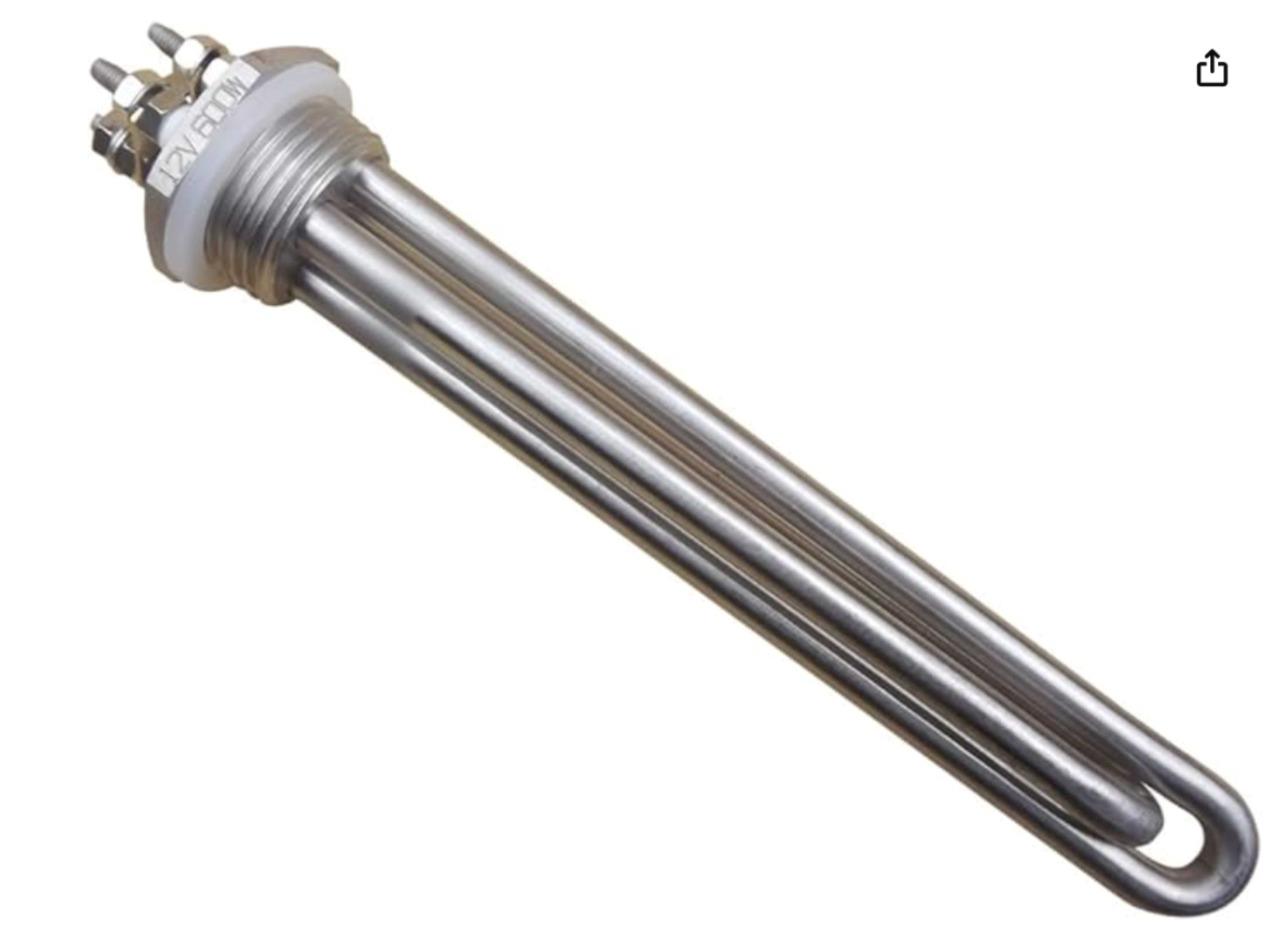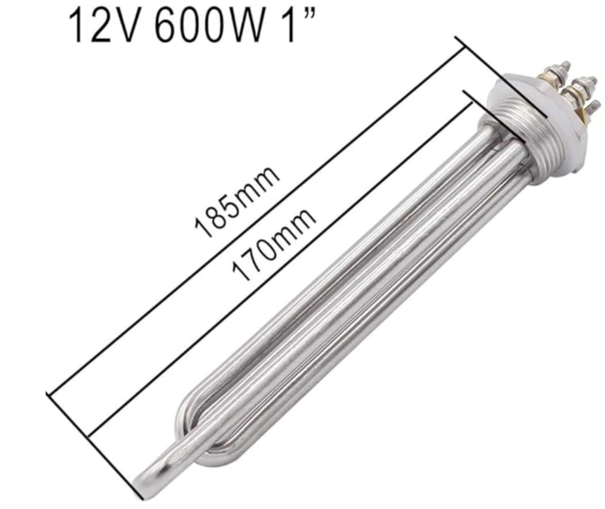 Here are some Denord immersion water heater elements. These are rated for 12V and 600W. They have a 1" NPT thread with silicon washer to seal. All are new in factory sleeves as shown.